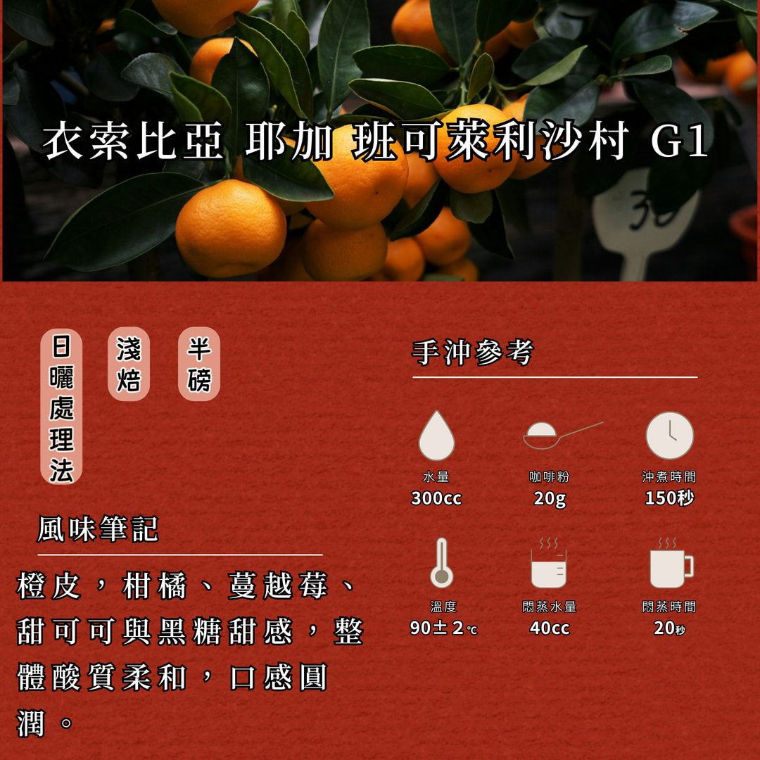 衣索比亞 耶加雪菲 班可萊麗沙村 日曬處理法 G1 濾掛咖啡