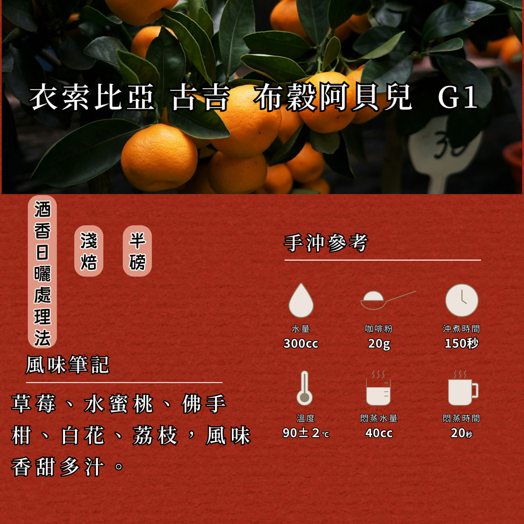 衣索比亞 古吉 布穀阿貝兒 酒香日曬處理法 G1 濾掛咖啡